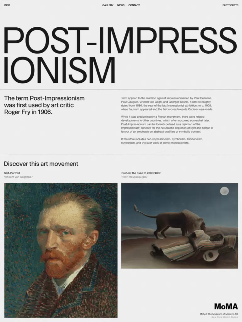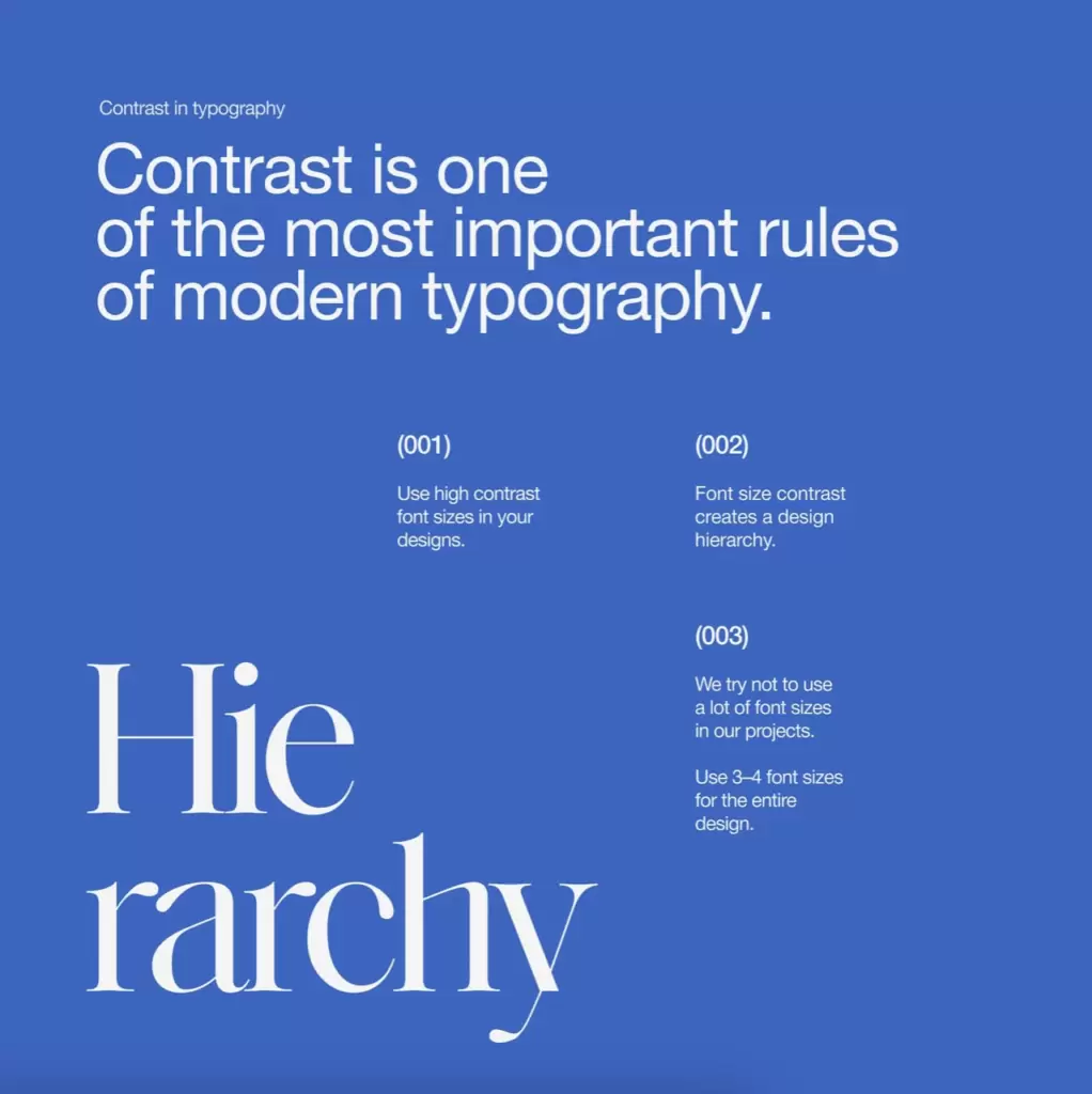 Size contrast in typography is essential to create hierarchy. For this principle to work well, there must be a lot of contrast between the font sizes. Below is an example of one of the good typography hierarchies on the web. It is important to avoid small differences in font size.